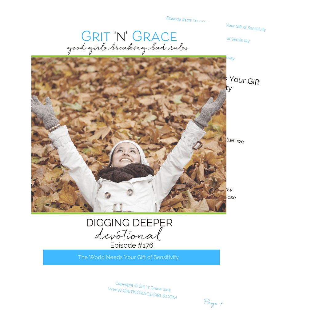 Hop on over to our website, GritnGraceGirls.com/episode176. There you’ll find our transcript, this week’s digging deeper devotional, a printable resource that helps you to apply what you’ve learned in this episode, and links to the Sensitive and Strong book site.